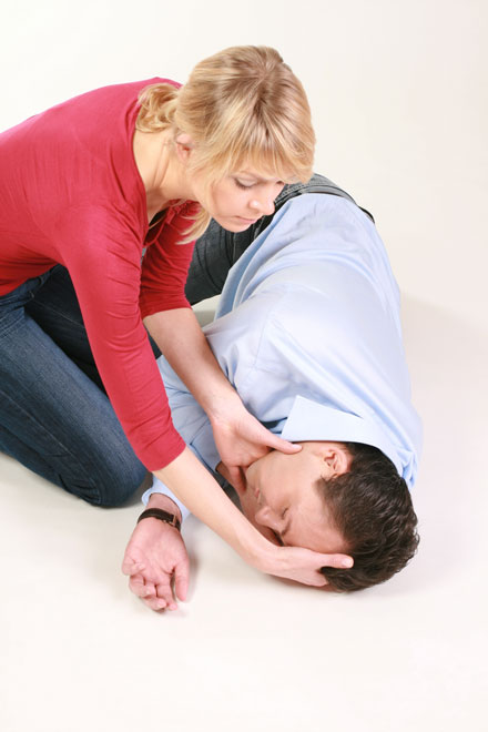 • Kopf nach hinten neigen, damit die Atemwege frei werden